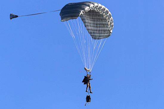 Laser cutters are perfect for mil-spec parachute manufacture. A flatbed laser cutting table guarantees an all-round sealed cut edge, something you cannot get on a conveyor cutter. Inkjet print heads label accurately and quickly with tested, approved ink.