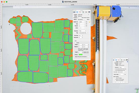 Perhaps the standout feature is Tangent's integration with SiliconEye, Aeronaut's whole table machine vision and digitising system. Used for interactive nesting, pattern tracing, nesting into enclosed and irregular shapes such as scraps and leather hides, SiliconEye is an incredibly powerful tool and an essential add-on to any automated cutter.