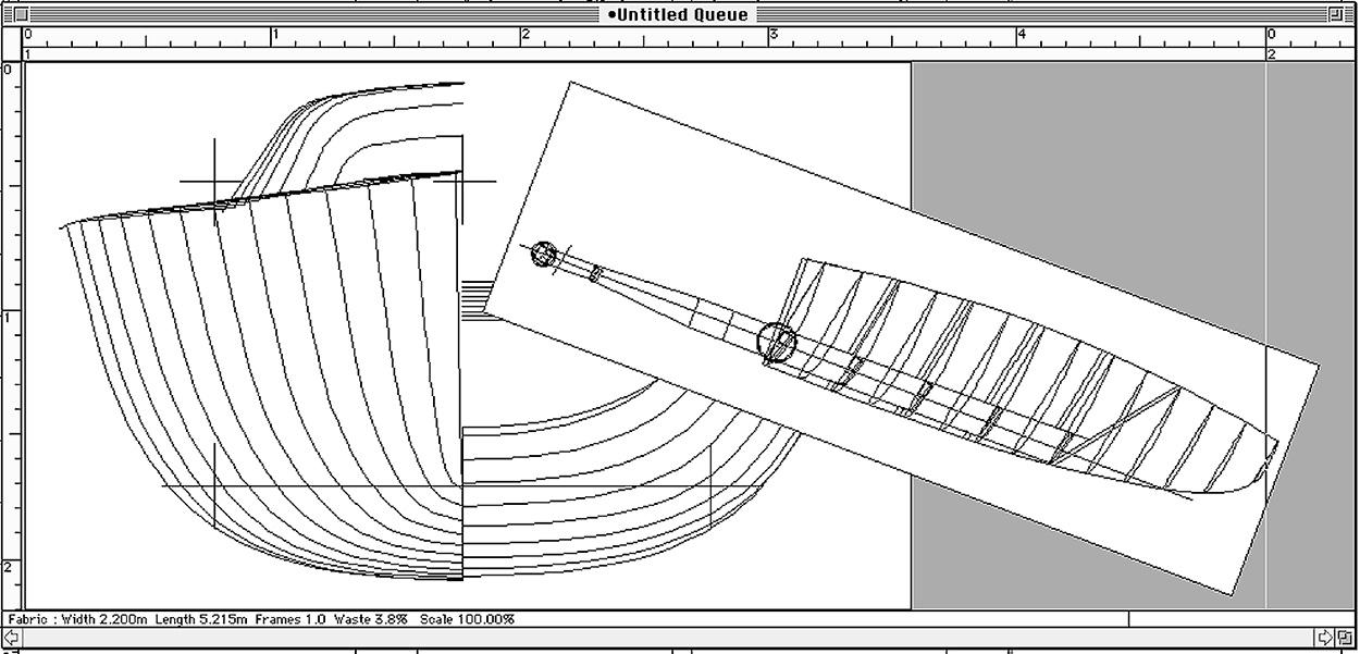 This arrangement wasn't entirely successful because half of the business owners objected to having to get up and move the mattress off the loft floor when the apprentice turned up for work. So we bought a basic pen plotter in 1987 leaving just the sewing machines in the bedroom and soon found that the software we had bought would design products like sails, but we couldn't cut a sail number let alone things like boom covers, bags and biminis. So we set about developing our own software, Panelmonger, for translating all sorts of files from sail and cad software into something we could plot were soon were selling Panelmonger to other sailmakers for file translations and our own plotter was hard at work doing things like full size boat hulls for boatbuilders.