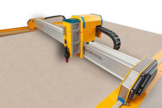 If you don't need a vacuum, then mounting a cutter on the floor may be a good option. Aeronaut's widest machines, at 12 metres wide, are almost always floor mounted. Cutters for carpet are usually floor mounted so the carpet can be rolled out, cut and rolled up again ready to delivery on site.