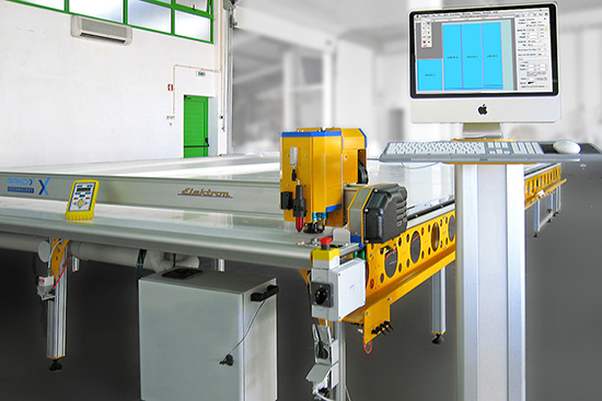 The Elektron Quattro is the standard cutter for marking, creasing and cutting of window furnishing fabrics. The Elektron Quattro is configured as a two-tool machine carrying a quick change Cam-lock rotary blade and creasing tool. Most new machines are fitted with an inkjet print head for pattern identification with a pen used for other markings. Cyclops and SiliconEye machine vision systems can be used for pattern matching and alignment.