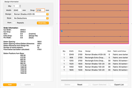 Our first blind making machines were bought because they could mark, crease and cut roller shades and romans. However it was our software which really made the difference, allowing customers to go from design to cut in under a minute and to efficiently nest patterns to optimise fabric use and reduce waste.