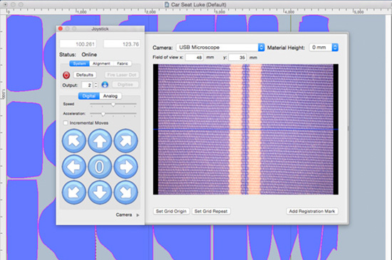 Combined with Cyclops machine vision, you get an accurate live view of exactly what is under the cutting head and can make sure that patterns are aligned to fit the fabric making many tasks easy  like cutting patterns from scrap or cutting digitally printed materials.