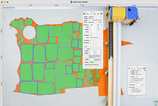This is what being in control of nesting  looks like! SiliconEye loads an image of the whole cutting table into the background of a queue. This means you can confidently nest into fabric, scraps or hides anywhere on the cutting table. Patterns can be traced and set as background panels so you can automatically nest inside them. You can zoom into the queue and identify faults and even vacuum holes without leaving the computer.  Machine vision completely changes the picture when nesting so once you have it, you won't know how you ever worked without it.