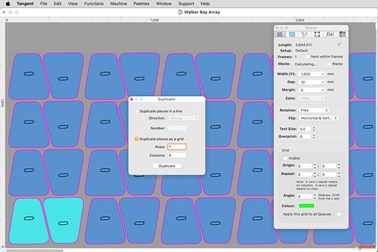 Having more than one nesting window means you can organise cut queues and fabrics the way you need. Sort patterns into colours, fabric styles, library queues. Duplicate and copy from one queue to another.